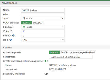 - Interface: Selecione a Interface na qual os AP’s se conectam - Vlan ID: Selecione o ID da vlan que será utilizada