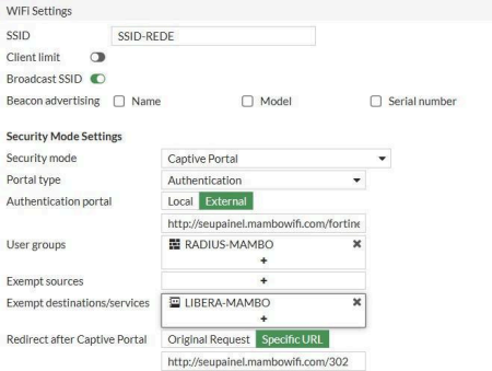 ● Versão 7.4.5 e 7.2.10 tiveram mudanças nos parâmetros de RADIUS, assim não sendo possível a instalação nessas versões.