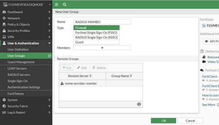 - Vá na aba User Groups, e crie um novo grupo, apontado nosso servidor RADIUS, clicando em ADD e selecionando o servidor que criamos anteriormente