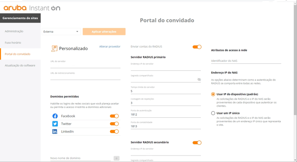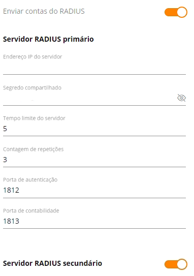 Ativar o RADIUS secundário e preencher conforme os dados informados em seu painel Mambo WiFi.