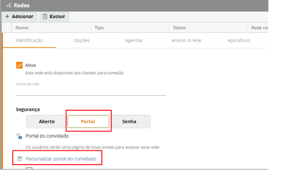 Em “Segurança” selecione o item “Portal”, em seguida clique em “Personalizar” no “portal do convidado”.