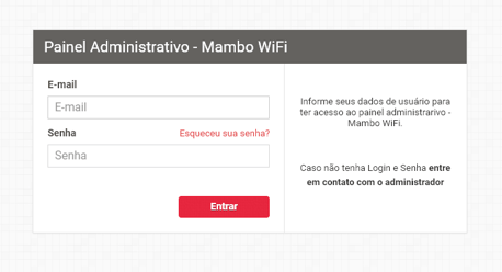 Se houver alguma dúvida ou dificuldade, você pode entrar em contato com nosso suporte através do e-mail suporte@mambowifi.com informando sua dificuldade, número de telefone para contato e URL do painel administrativo.