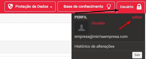 Ao acessar a área administrativa, no canto superior direito, clique no seu usuário e click em editar
