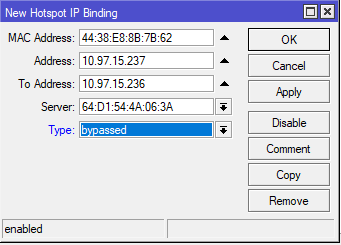 Na tela que ira abrir, altere o campo Type para bypassed: