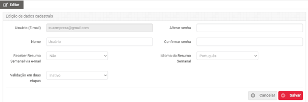 Nesta tela você precisa digitar a nova senha no campo "Alterar senha", confirmar a nova senha no campo abaixo e clicar em salvar: