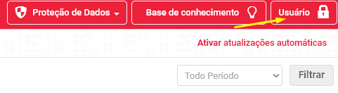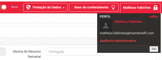 Para alterar uma senha pelo painel administrativo Mambo Wifi, você precisa logar em seu painel Mambo Wifi e clicar em seu nome no canto superior direito: