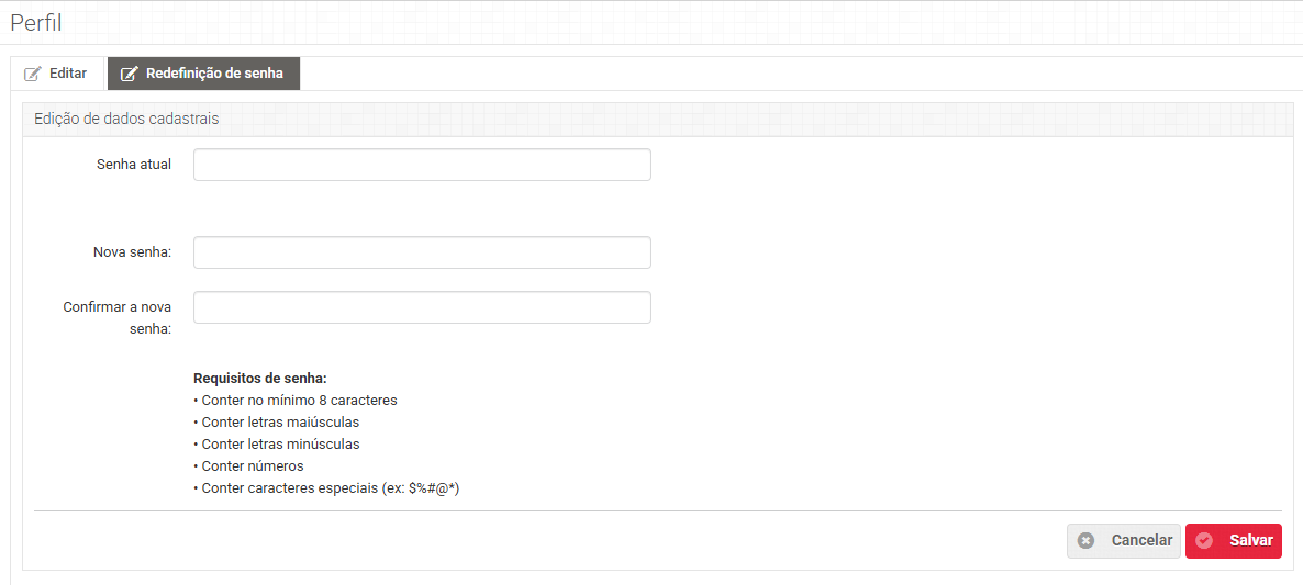 4. Preencha com sua senha atual e a nova senha e clique em salvar: