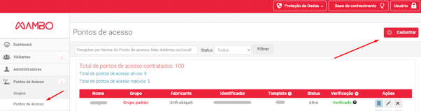 2. Vá em Pontos de acesso > Pontos de acesso: