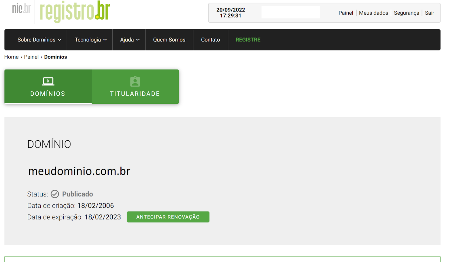 Clique no domínio desejado para edição (você verá em seguida a página de edição do domínio):