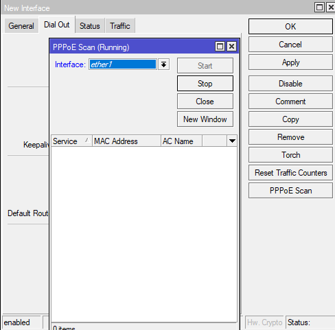 Na próxima tela, clicar em PPPoE Scan, e anotar o Service Name e AC Name, as informações irão aparecer na área destacada: