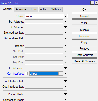 Out.Interface: Ether1-gateway (ou a interface que estiver conectado o link PPPoE)