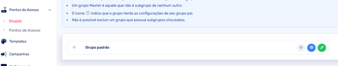 Clique em Configurações (ícone da engrenagem) referente ao grupo que deseja customizar. No exemplo, o grupo padrão será customizado.