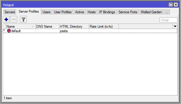No menu lateral esquerdo, acesse IP → HotSpot e vá para aba Server Profiles e de um duplo clique no perfil default