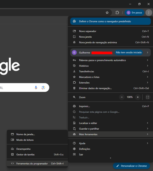 Acesse "Menu > Mais ferramentas > Ferramentas do desenvolvedor" ou pressione F12 ou Fn-F12 no teclado para iniciar o recurso Ferramentas do desenvolvedor.