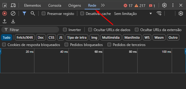 Acesse o menu do canto superior direito > "Desenvolvedor > Rede" ou pressione Ctrl-Shift-E / Cmd-Alt-E no macOS para iniciar o recurso Ferramentas de desenvolvimento do Firefox no modo de rede.