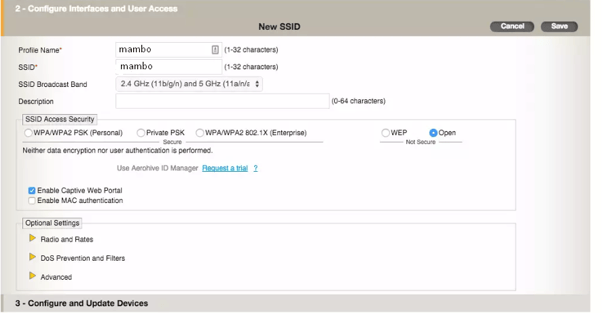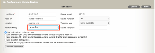 Em Network Policy, selecione Mambo WiFi e clique no botão Save: