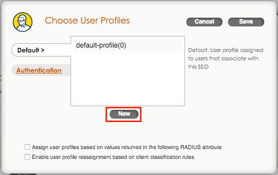 No menu superior, acesse Configuration. Clique no botão New para criar uma nova política:
