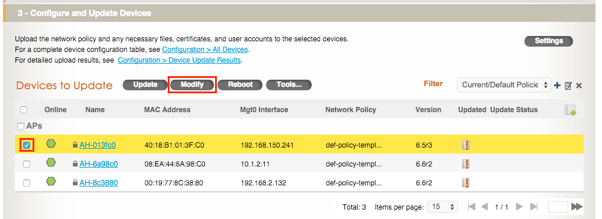 Selecione as APs em que deseja aplicar o SSID da Mambo WiFi e clique no botão Modify: