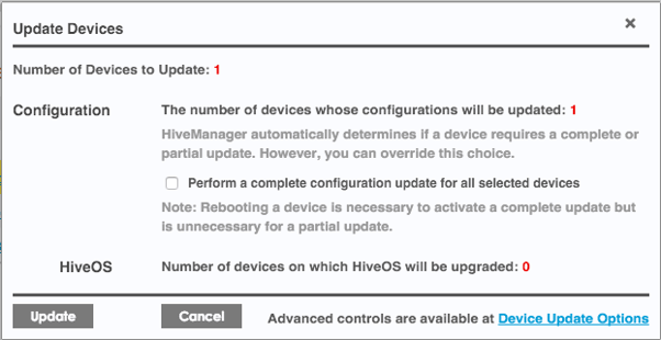 Selecione as APs novamente, clique em no botão Update, selecione Update Device: