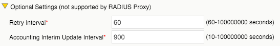 Expanda Optional Settings (not suported by RADIUS Proxy) e configure conforme abaixo: