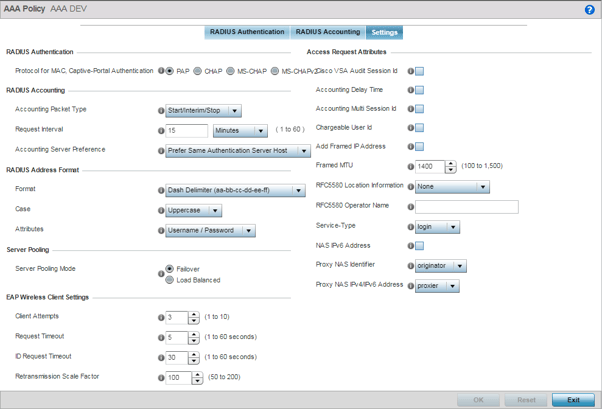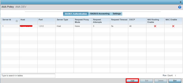* Em AAA Policy preencha com o servidor RADIUS criado