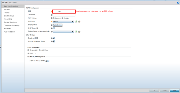 2 Criando SSID e Atribuindo a vlan (se for utilizar)