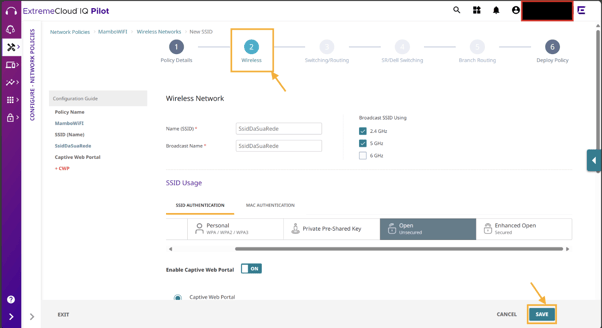 Na Aba Wireless, preencha: