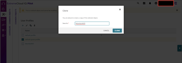 No menu, acesse Configure → Common Objects → User Profiles → default-guest-profile, clique em clone