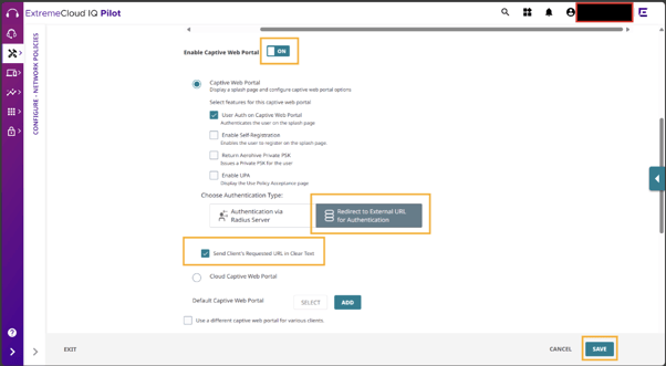 Enable Captive Portal: Habilitado