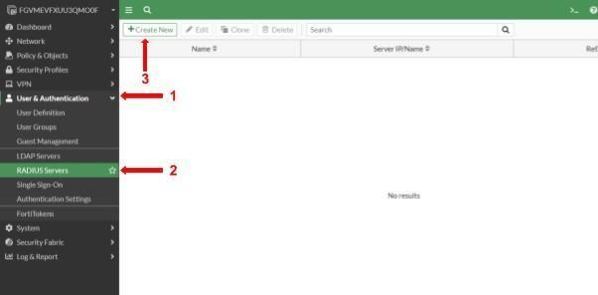 User & Device → Autentication → RADIUS Servers → Create New