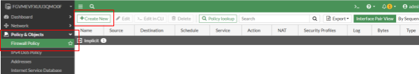 Acesse Policy & Object → Firewall Policy → Create New