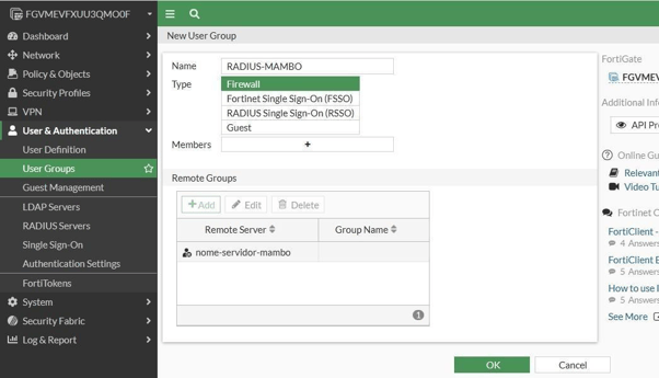 Vá na aba User Groups, e crie um novo grupo, apontado nosso servidor RADIUS, clicando em ADD e selecionando o servidor que criamos anteriormente
