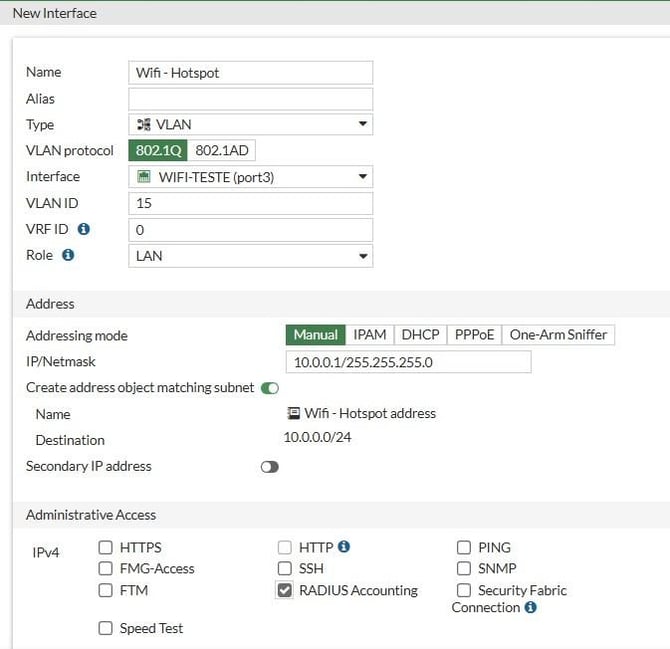 - Interface: Selecione a interface física que recebera a vlan