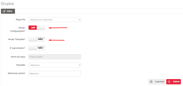 É regra master? -> Se você selecionar esta opção, estará indicando que este é um grupo pai por padrão e que terá outros grupos filhos atrelado a ele.