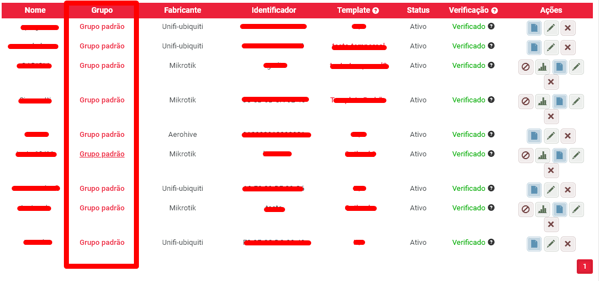 Para verificar quais grupos estão sendo utilizados, você pode verificar através dos pontos de acesso, indo até: Pontos de acesso > Pontos de acesso e visualizar quais grupos estão atrelados aos pontos: