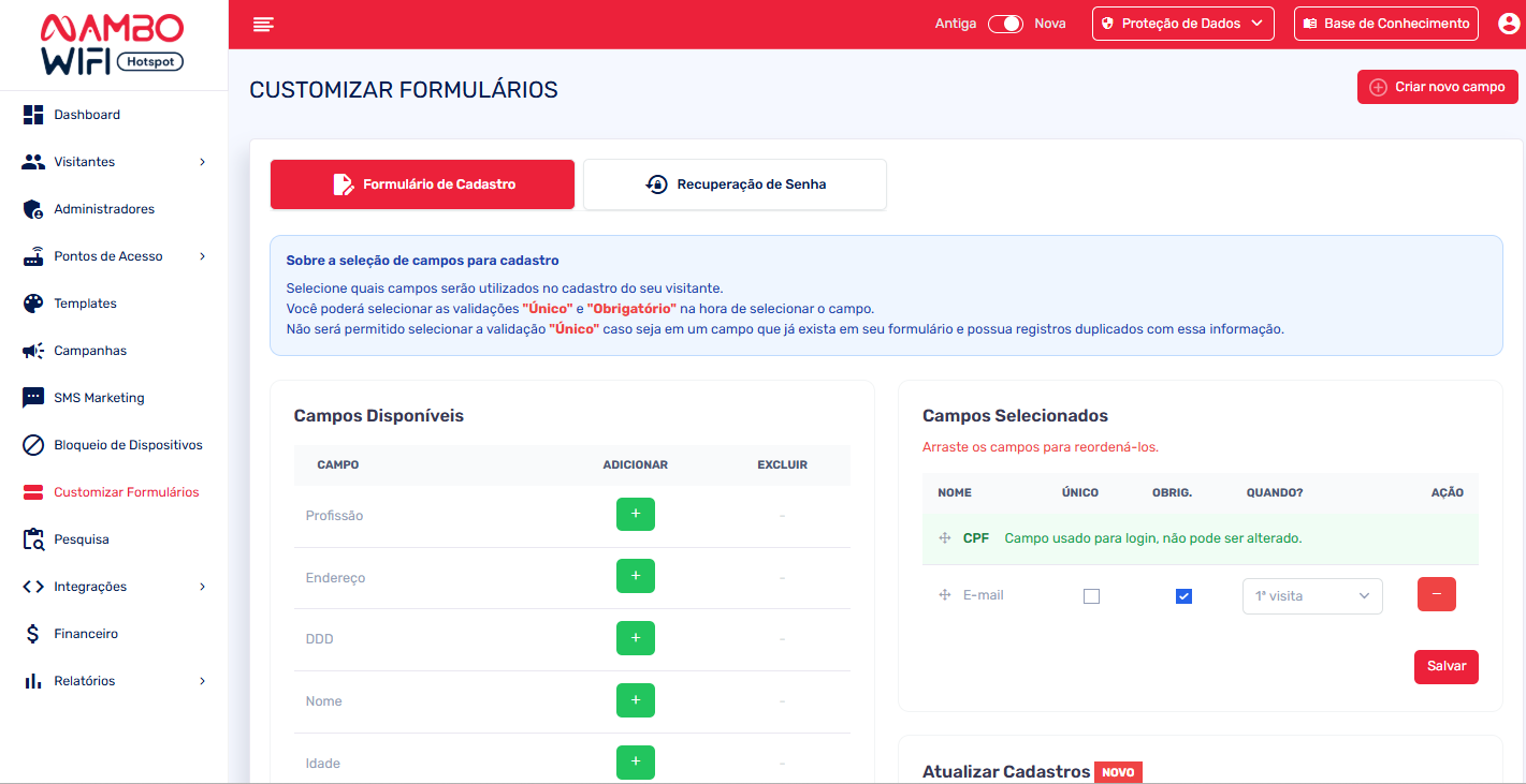Este recurso permite que, automaticamente, todos os visitantes cadastrados no captive portal tenham seus dados enviados para o IXC, criando um novo lead.