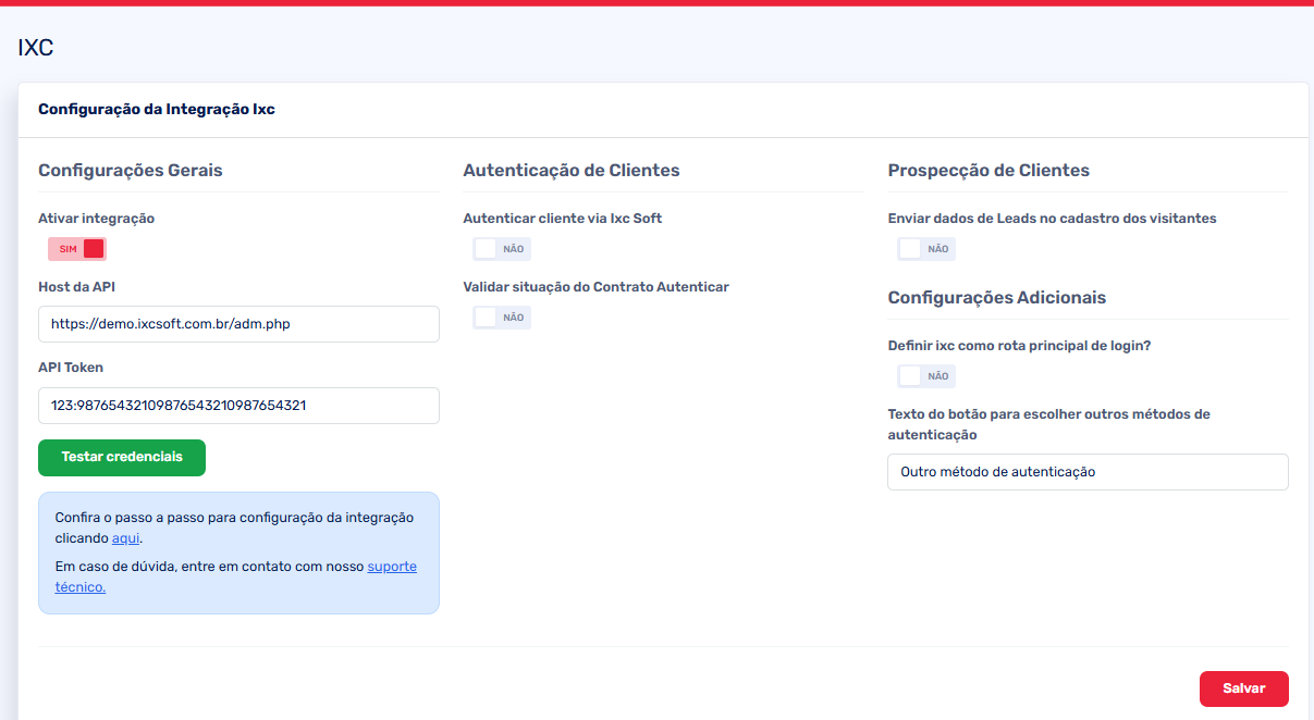 4.3. Autenticar clientes via IXC? [Sim ou Não]