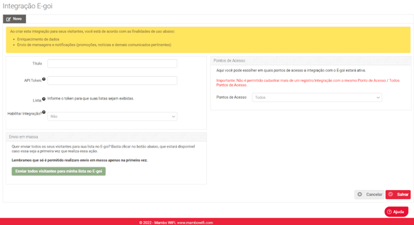 Pronto! Seu painel Mambo WiFi está integrado com o E-goi.