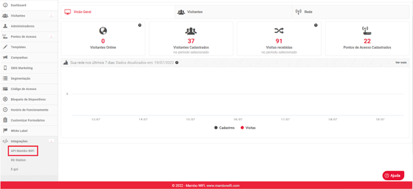 Para configurar e utilizar a API do Mambo WiFi, é necessário um token que é gerado através de seu painel administrativo. Para gerar um novo, acesse seu painel Mambo WiFi, clique no menu "Integrações" e selecione API Mambo WiFi.