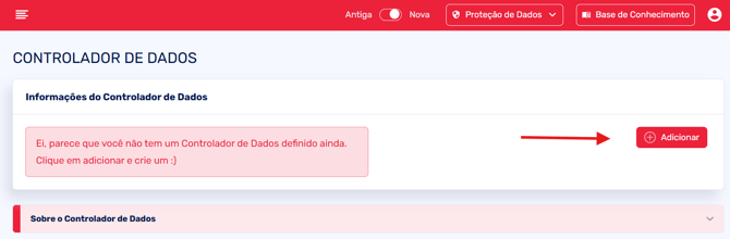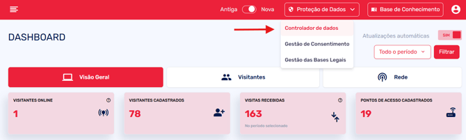 Na tela inicial de seu painel administrativo, basta clicar em "Proteção de dados" > "Controlador de Dados".