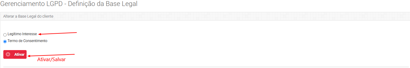 3° Selecione Legítimo Interesse para desabilitar o Termo de Consentimento.
