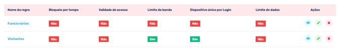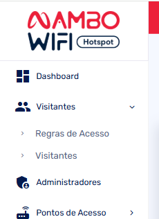 Para configurar o limite de banda, acesse seu painel administrativo e vá até o menu Visitantes e depois Regras de Acesso.
