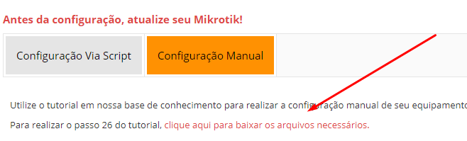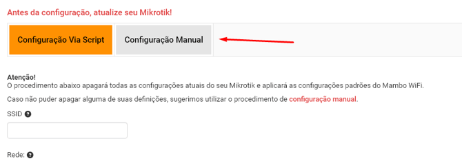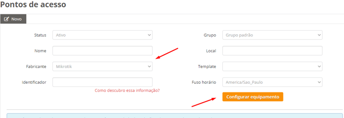 - Selecione Mikrotik em Fabricante, com isso irá aparecer um botão chamado "configurar equipamento, click nele: