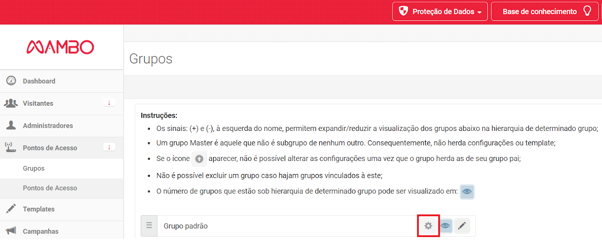 Para configurar, acesse seu painel administrativo (suaempresa.mambowifi.com) e vá até o menu "Pontos de Acesso" e depois "Grupos".