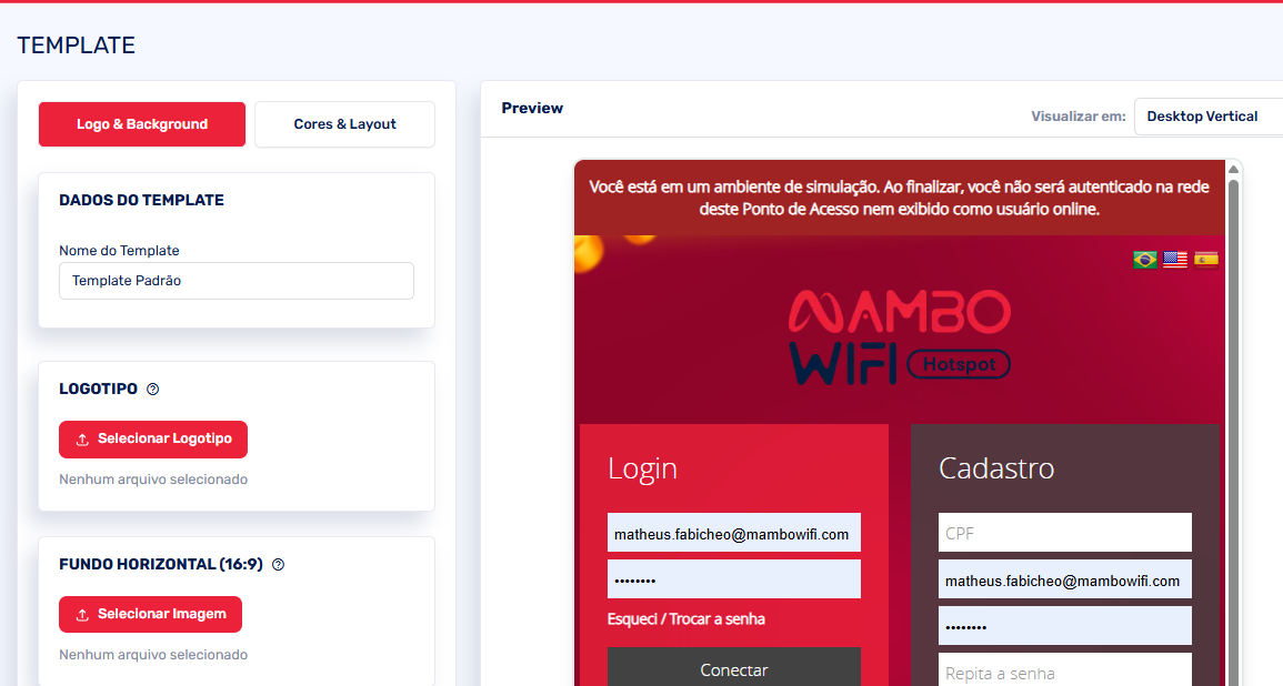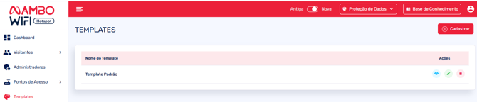 Para configurar, acesse seu painel administrativo (suaempresa.mambowifi.com). Clique na opção "Templates" no menu lateral esquerdo:
