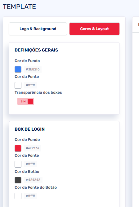 Você também pode alterar as cores de fundo do formulário de cadastro, etc, indo até a opção de cores e Layout