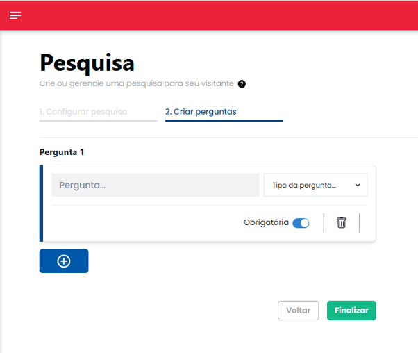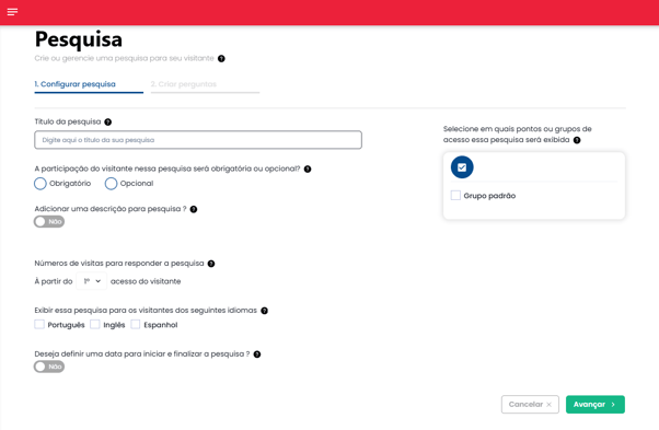 Após preenchido, clique em avançar para seguir para a criação de perguntas.