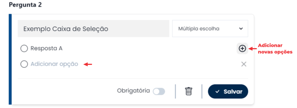 Caixa de Seleção: Disponibiliza múltiplas opções de resposta. O visitante poderá selecionar mais de uma opção.