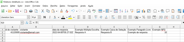 Relatório Pesquisa: Este é um relatório detalhado, ele informará dados do visitante, data da resposta e quais as respostas do visitante individualmente.