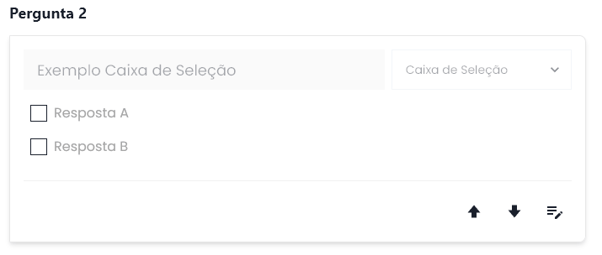 Após criar uma pergunta, clique em Salvar. Após salvar, você poderá editar a ordem que ela aparecerá clicando nas setas. Também é possível editar a pergunta, o tipo de pergunta e as respostas.